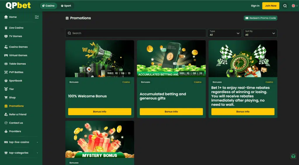 One of the biggest features of the platform is its super game content lineup: QPBET offers up to 9,954 games covering all mainstream types, including slot machines, baccarat, roulette, Texas Hold’em, blackjack, various table games and more than 800 live dealer tables, allowing players to enjoy an immersive and interactive live casino experience. At the same time, it also supports real-time betting services for global sports events and e-sports to meet the needs of different users.